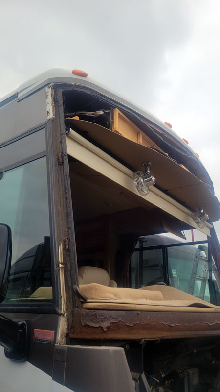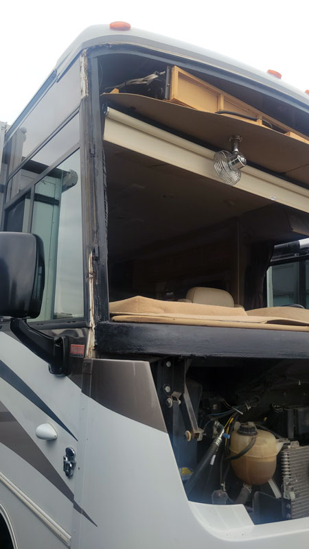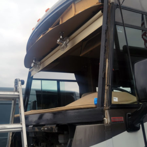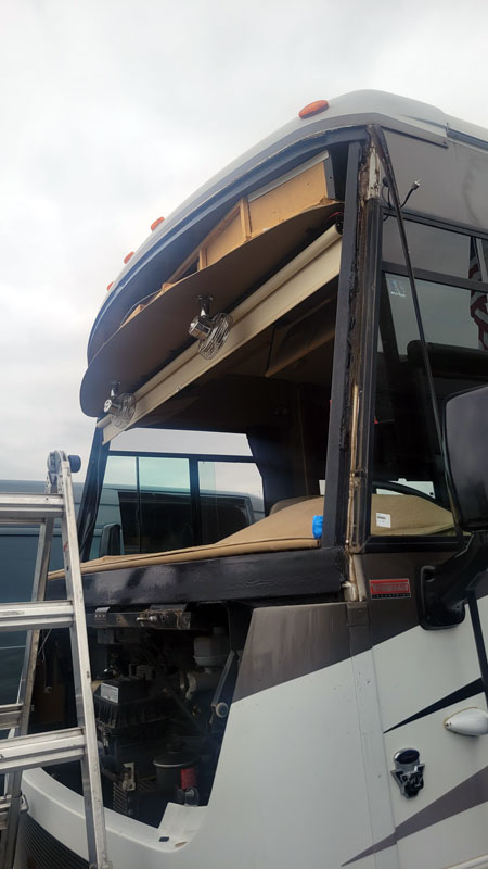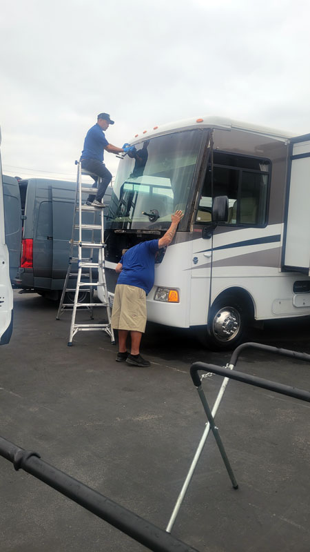 New View was called to replace the windshield on a 2013 Winnebago Vista. The windshield had a 20-inch crack and was also extremely loose, which is a serious issue. The windshield on this body style is a structural component critical to the integrity of the front cap.