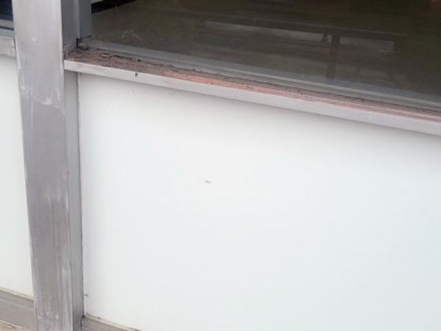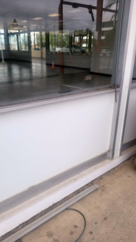 For this job we revinyl, recaulk, and replace several store front windows that had cracked over the years.